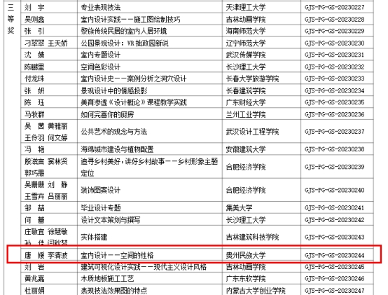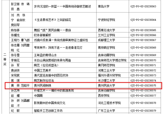在本次国赛中,我校获得推荐的3组作品不负众望,全部入围,分别获得了传统文化艺术组二等奖、三等奖,艺术空间设计三等奖的好成绩。