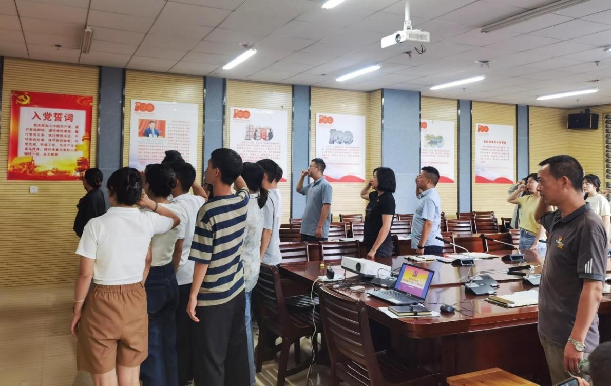 活动最后举行“新党员宣誓、老党员重温入党誓词”活动,由学院专职组织员葛明芳同志带领大家面向党旗庄严宣誓。