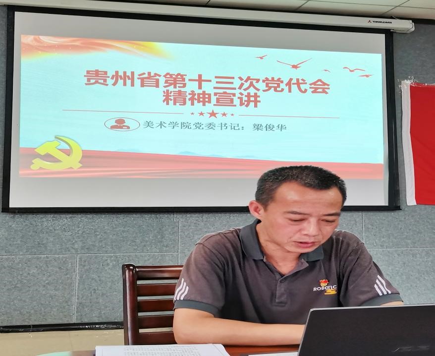 首先,由学院党委书记梁俊华同志宣讲《贵州省第十三次党代会精神》。梁俊华书记在宣讲中指出:要始终把习近平新时代中国特色社会主义思想作为总遵循、总纲领、总指针,衷心拥护“两个确立”、忠诚践行“两个维护”,认真学习宣传省第十三次党代会精神,牢记中国共产党是什么、要干什么这个根本问题,充分发挥党组织表率作用和党员先锋模范作用,努力为党和人民争取更大光荣。