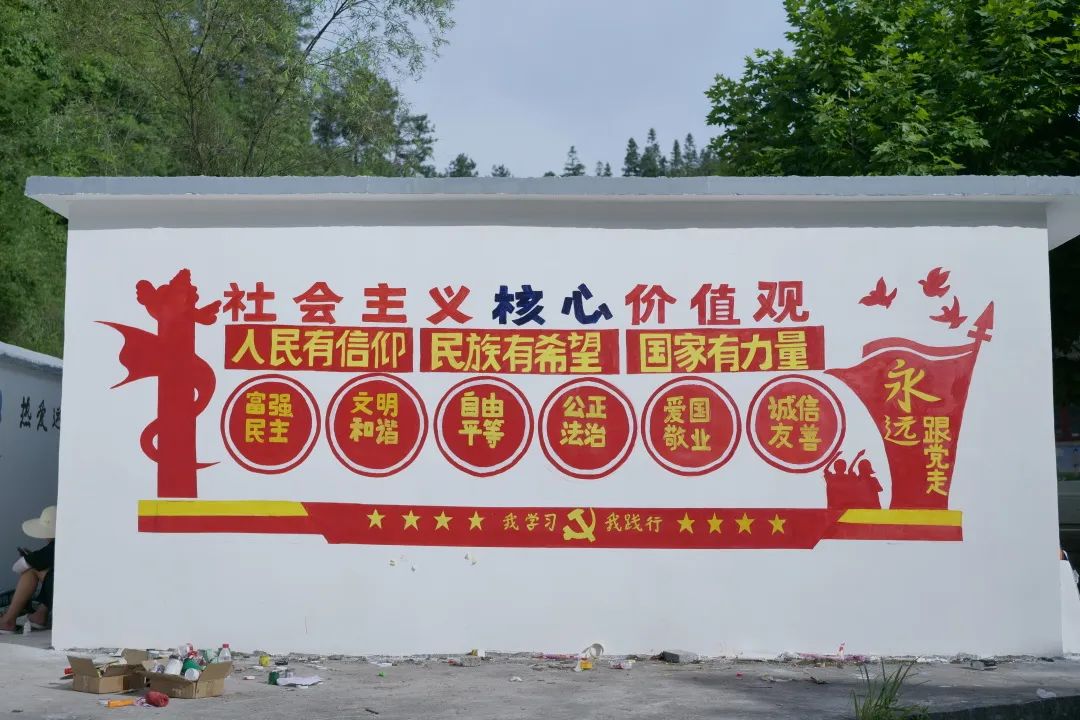 在秀地村村委,学生们又完成了美丽乡村建设主题墙绘。目的在于把乡村振兴发展战略主题融入当地特色民族文化,并实现公共艺术设施的改造。师生们还前往洌洞村,立足当地特色传统建筑,通过实地测量、拍照取样、飞机航拍、入户调查、实地绘画等方式,开展乡村振兴高质量发展的环境规划、建筑改造设计等工作。