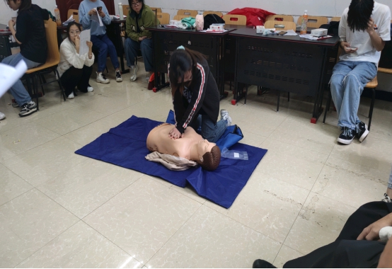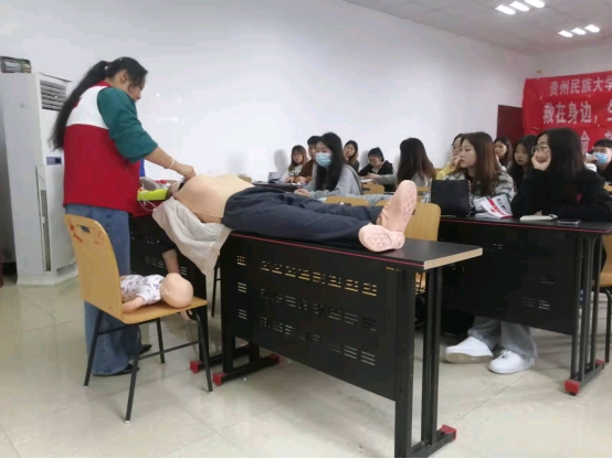 培训现场还安排了理论考试和实践操作考试,重点考核了同学们对创伤包扎技能、心肺复苏技能的掌握程度。