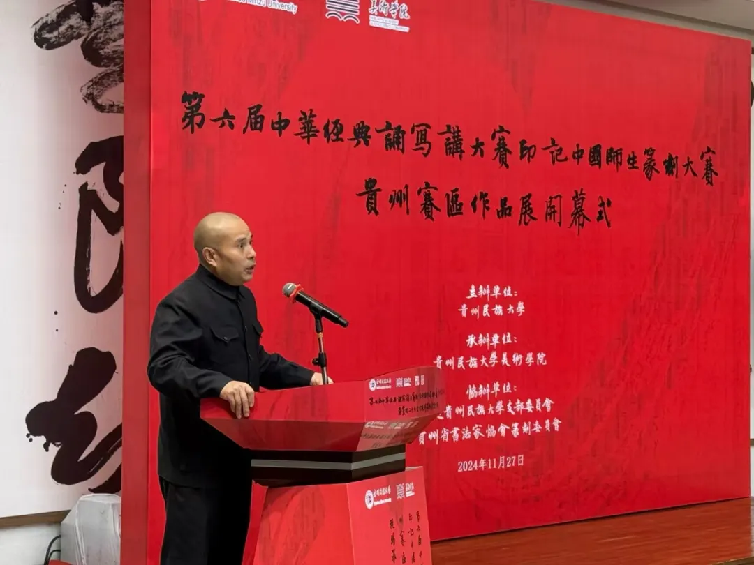 2024年11月27日,第六届中华经典诵写讲大赛“印记中国”师生篆刻大赛贵州赛区作品展暨党的二十大报告金句现场篆刻展演活动在贵阳孔学堂举行。展览由437ccm必赢国际主办,437ccm必赢国际承办,贵州省书法家协会篆刻委员会与民进437ccm必赢国际支部委员会协办。